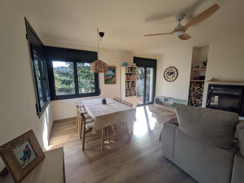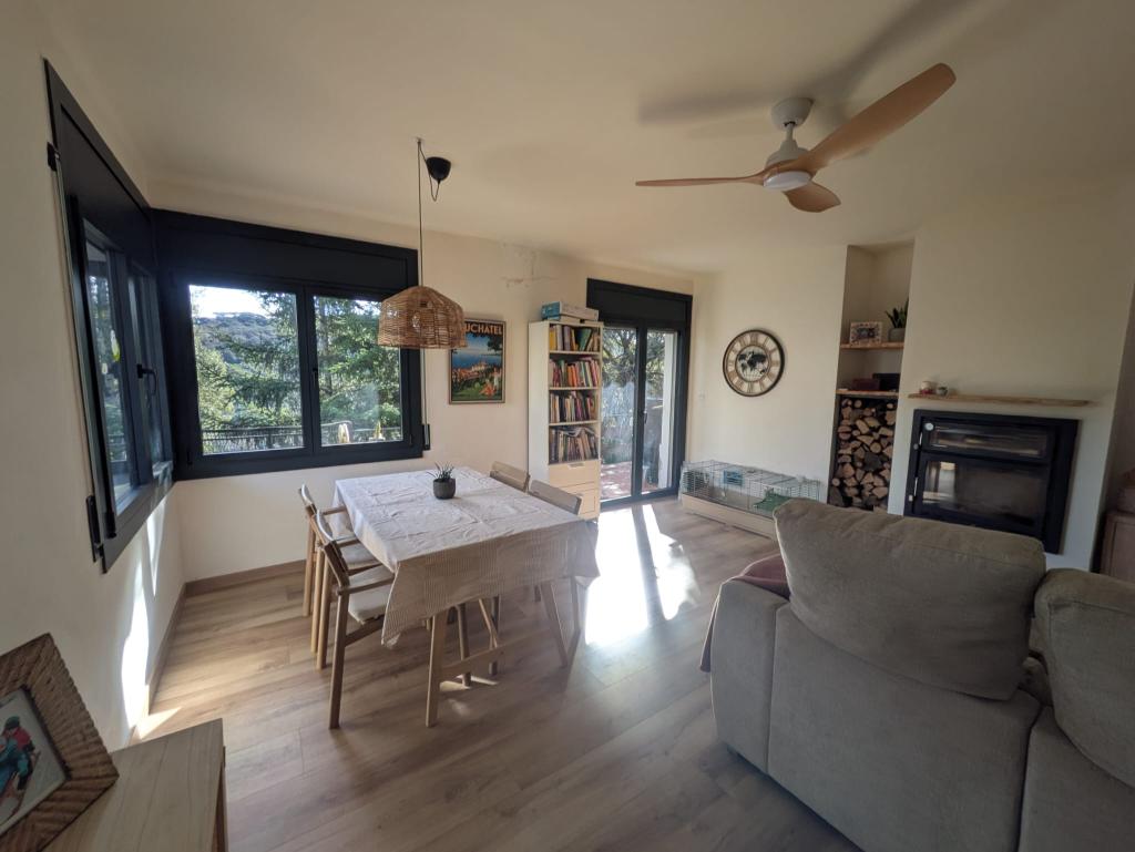 Descripció:Casa aislada ubicada en uno de los parajes con vistas al parque natural del Montnegre-Corredor, situada en la urbanización de “Can Bosc”, la cual pertenece al municipio de Santa Mª De Palautordera, bien comunicada con AP7, así como estación de Renfe a pocos minutos en vehículo. La vivienda dispone de 3Hb, baño completo mas aseo en el garaje, amplio comedor con chimenea la cual dispone de dispositivo de ventilador para calentar toda la casa, por lo que energéticamente hablando es sostenible, totalmente reformada de hace 1 año aprox., por lo que no tendrás que realizar molestas reformas.